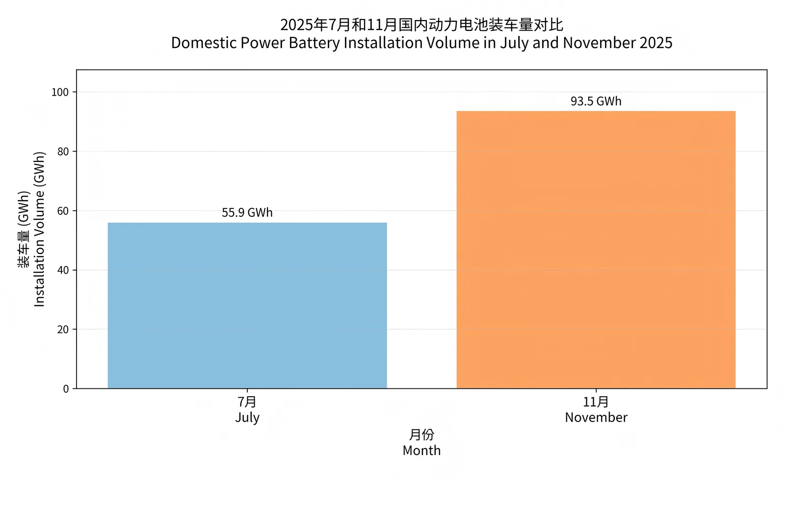 Installasjonsvolum for husholdningsbatterier i juli og november 2025